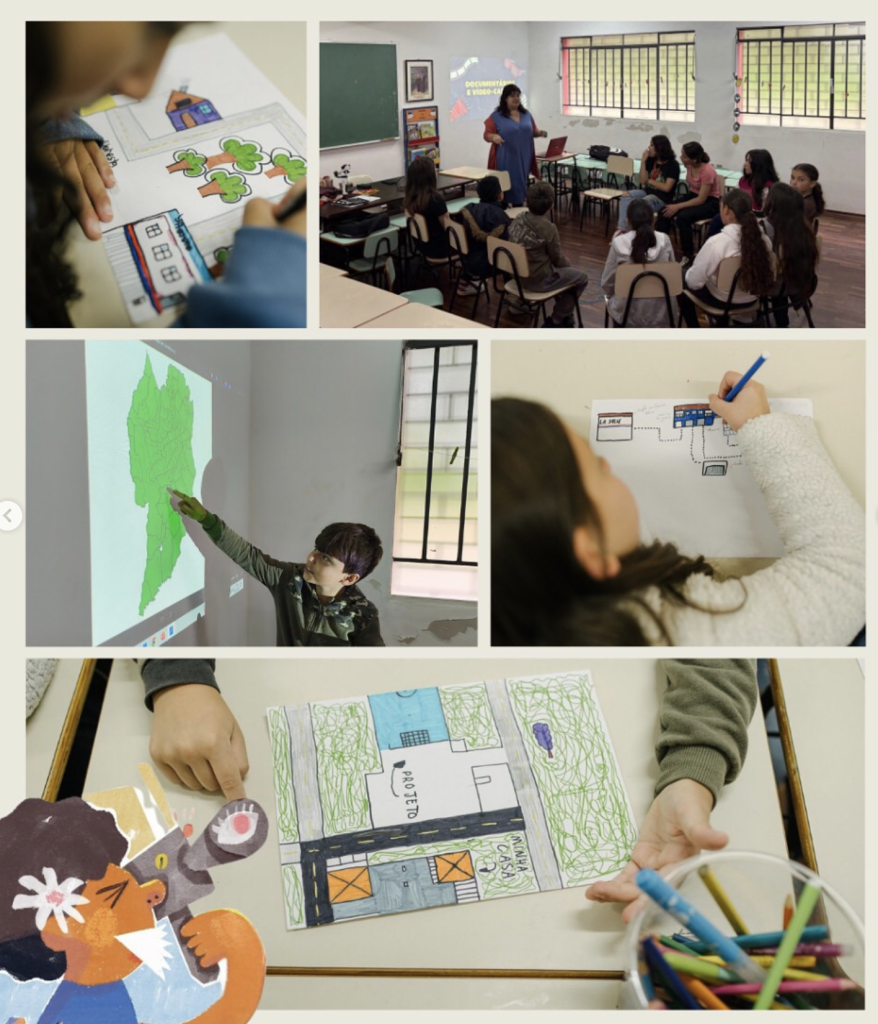 As crianças mergulharam no universo do cinema documental, mapearam o próprio bairro em uma cartografia produzida por elas e transformaram esse mapa em roteiro: um exercício lindo de olhar para o território com atenção, memória e imaginação.